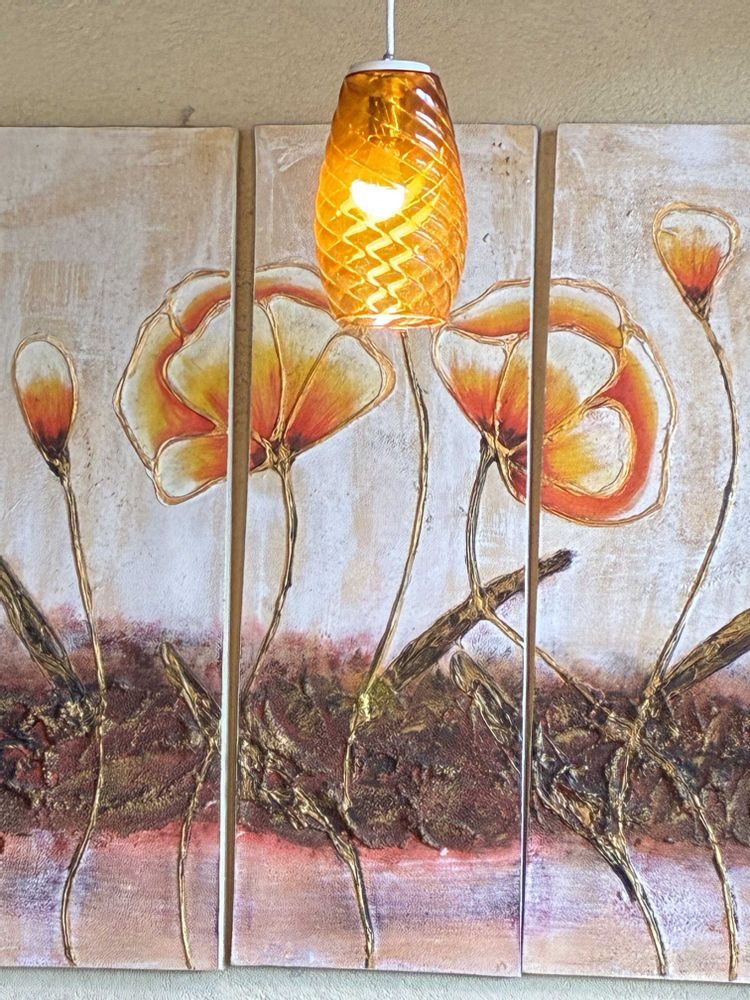 イタリアン🇮🇹レストランにて、ガクに飾ってある「ポピー」の絵や観葉植物「フィカス」をパチリ!📸🏵️🌿🪴😄👌