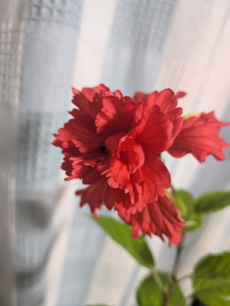 さん🌼おはようございます☀ハイビスカスフラミンゴ🦩ちゃん🎀今年の夏も楽しませてくれた。最後の1輪咲きました!🎉🎉