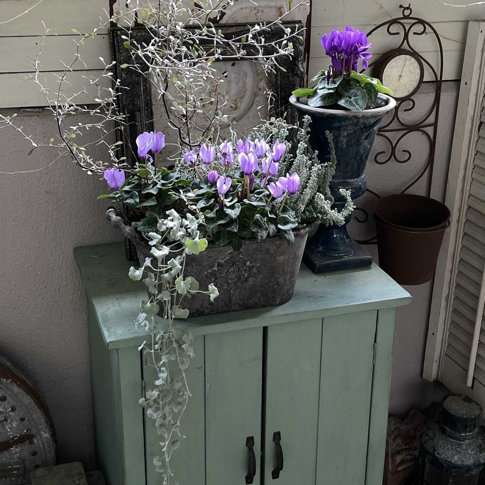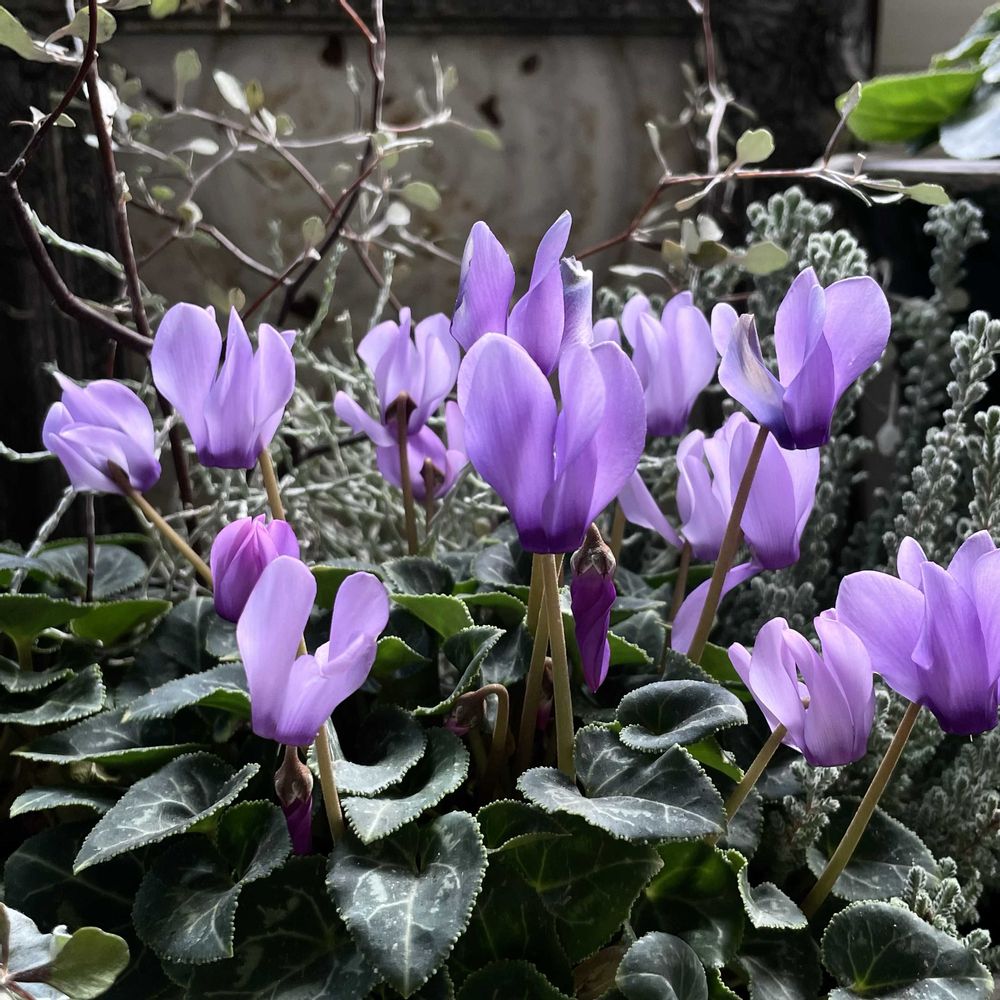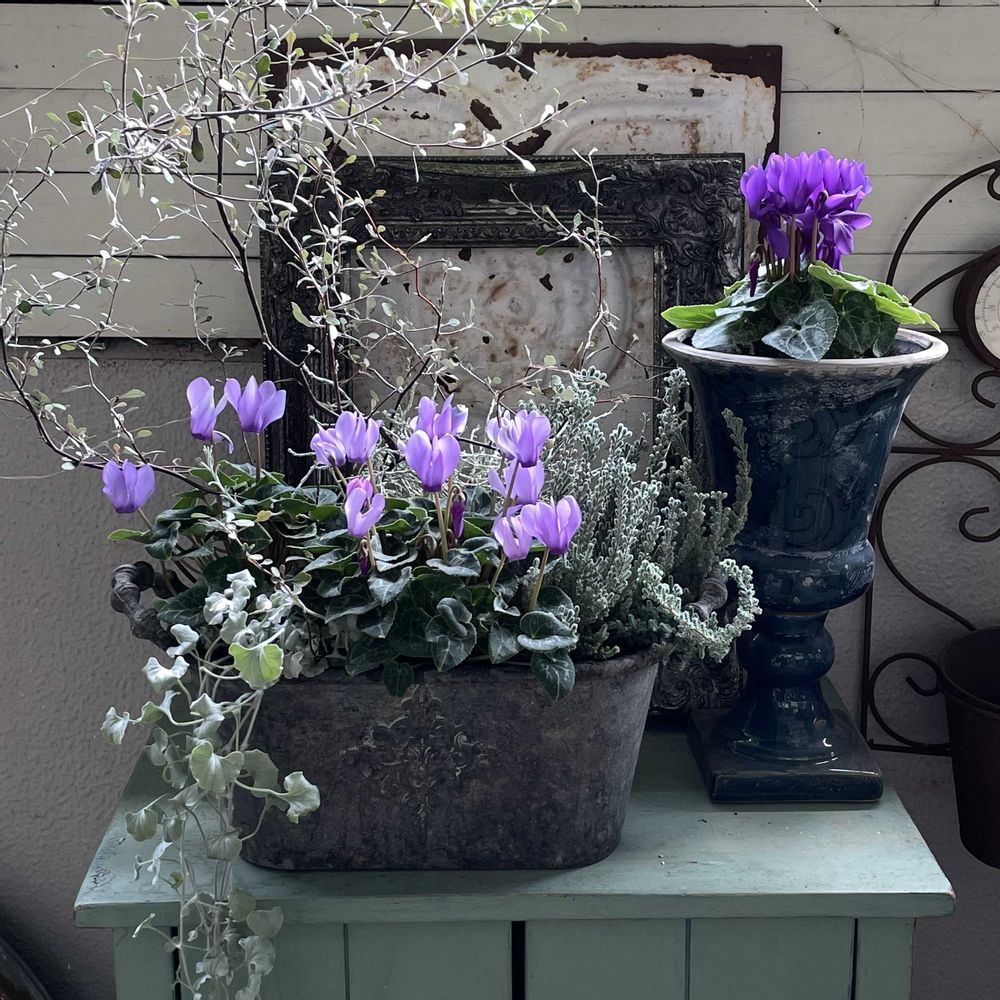 ラベンダー色の「ドラゴン」シクラメンとシルバーリーフがとても良い感じで癒されます💕🥰