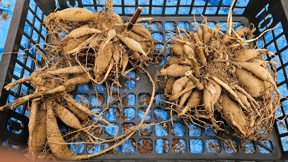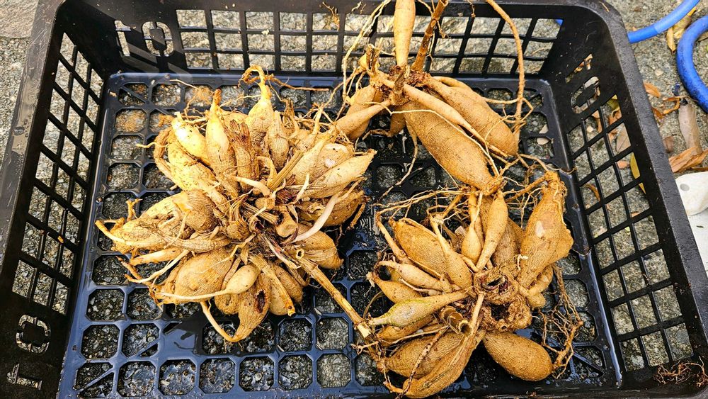 寒くなり、ダリヤも立枯れしたので、週末の雨降りの前に球根の取り出しと、分球を考えてましたが…