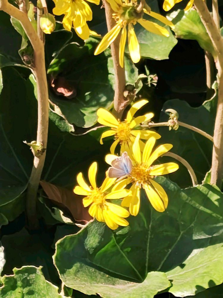 先週の昼下がり ツワブキの花で蜆蝶が日向ぼっこしていました