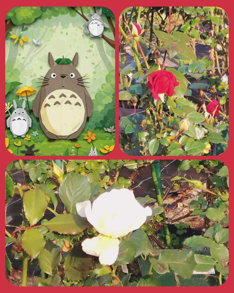 赤、白の薔薇🌹、トトロ、可愛い~ですねー🎶✨✨✨✨