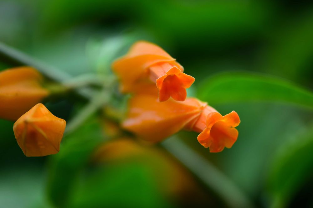 ※オレンジ色の不思議な形の花を付ける。萼と花が同色のオレンジ。