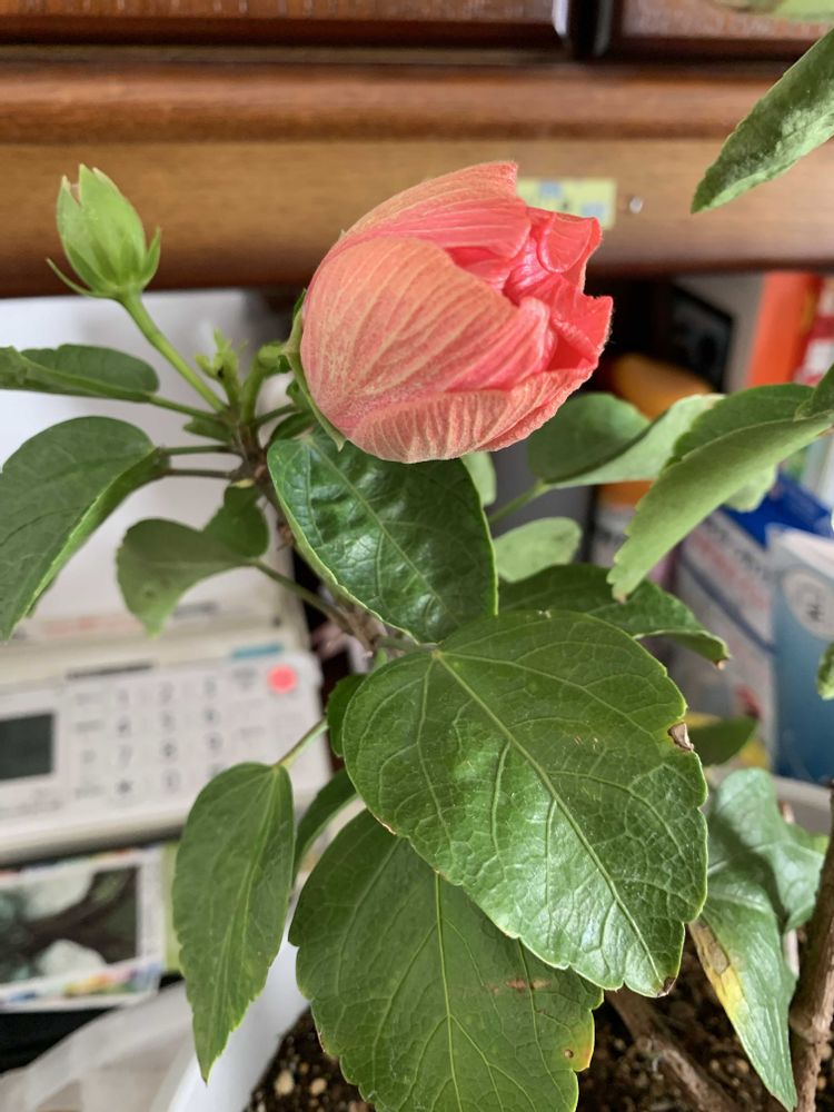 ハイビスカス🌺お部屋に入れてからやっと咲いてくれました〜🤗