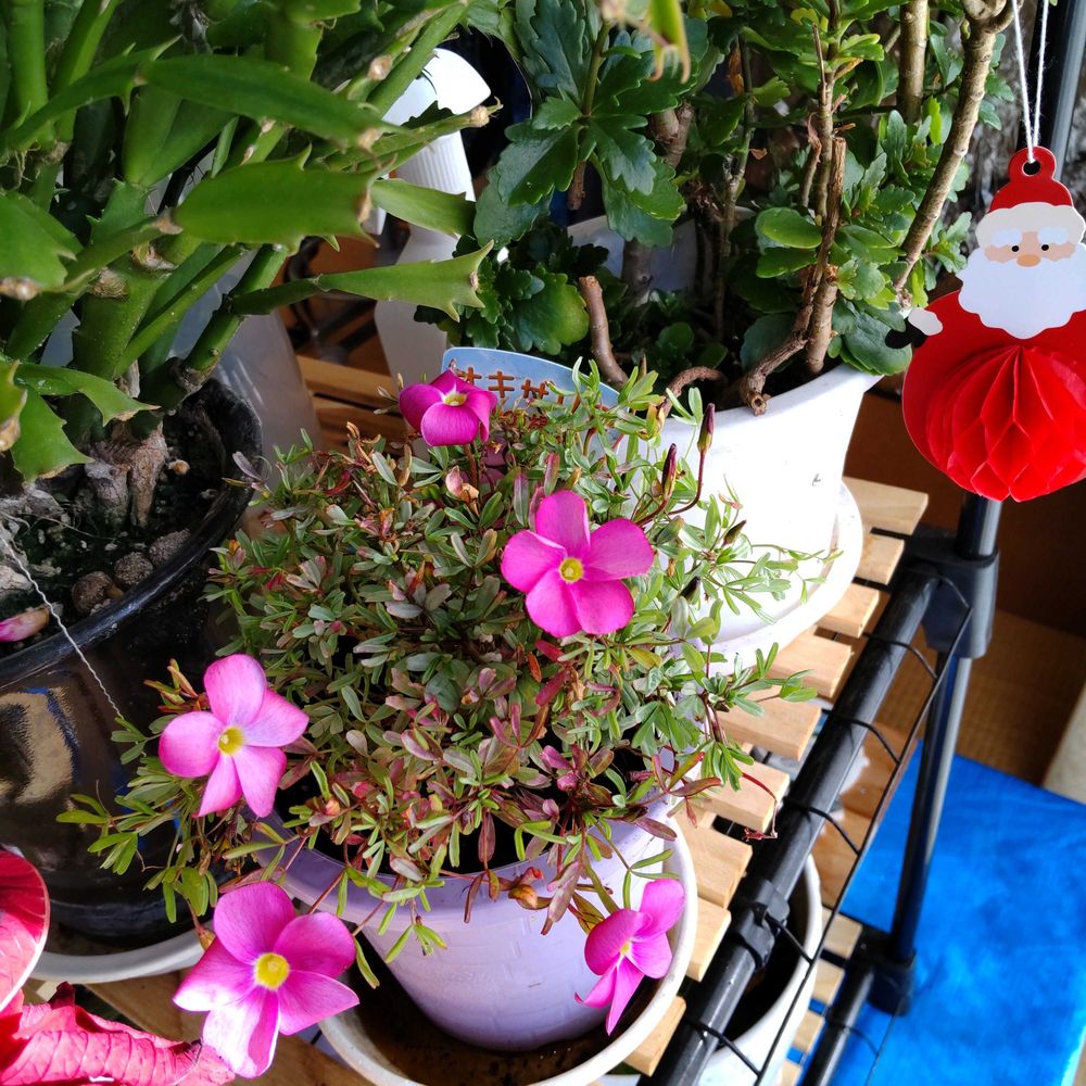 お店に行ったら、100円に値下げされてました。まだまだ、元気なオキザリス!サンタさんも喜んでます。今日は、暴風もやみ、晴天!少し栄養をあげ、種育てられるようにしたい。