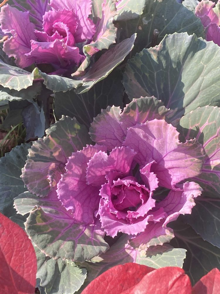 写真より実物の方が発色が綺麗で丸葉葉牡丹の赤、白の中間のような色に🩵そしてめちゃくちゃ大きくなってます😆