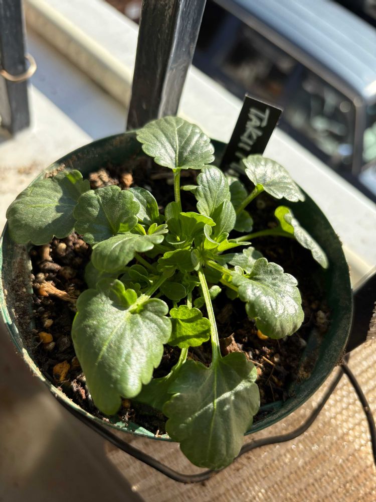 種まきビオラ。まだこれからという子もいる。タキイさんのミックスと、フリル咲きパンジーは何色が咲くかまだわからないからワクワクする。