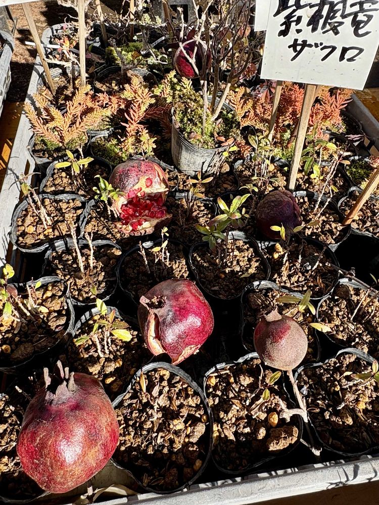 ひとつだけ細い枝にザクロの実が付いている苗もあって(1枚目画像)
