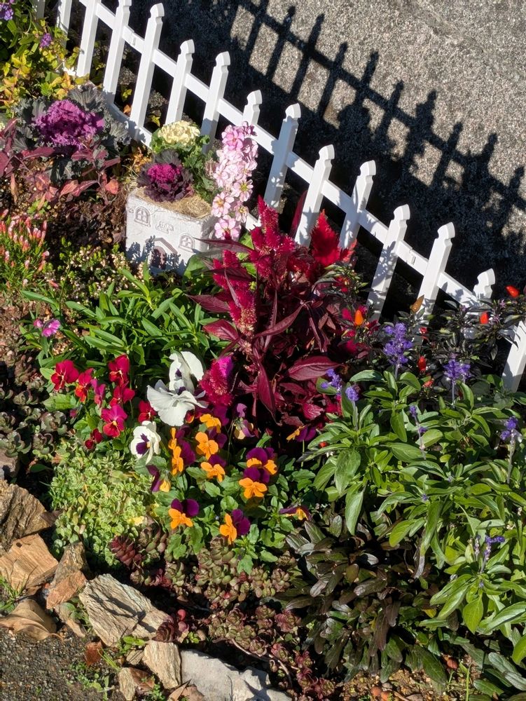 そこで、10月半ばに、夏のお花が元気なままの花壇の中に、秋色🍁🍂のスペースを作って、目で秋を楽しむ作戦に🎶(10月20日、11 月14日投稿)