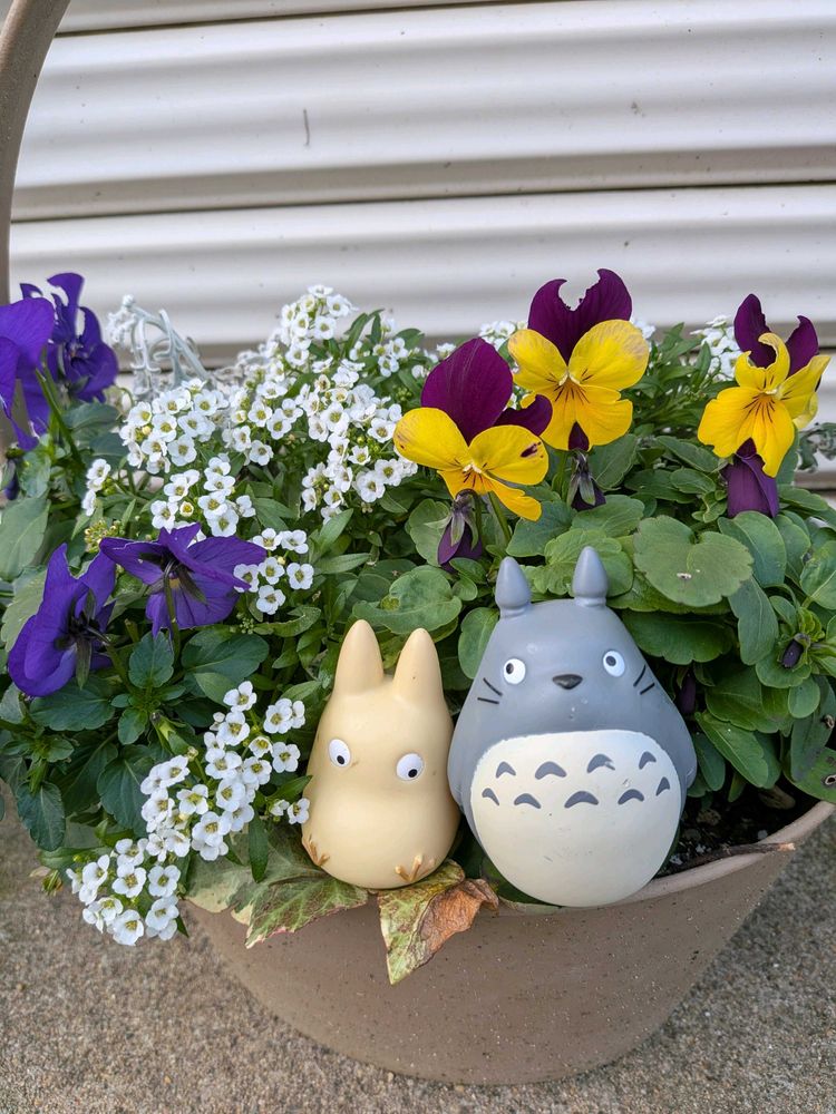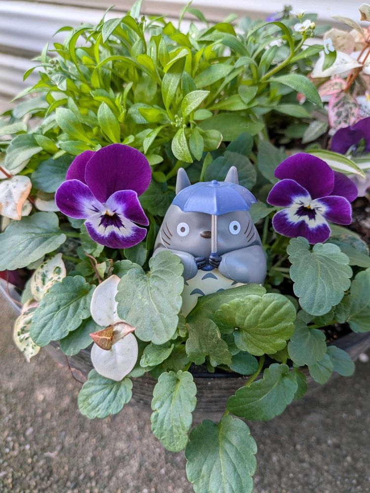 仕事から帰り晴れ間をみてトトロと一緒に玄関先で育つ花鉢巡りをしました🤫