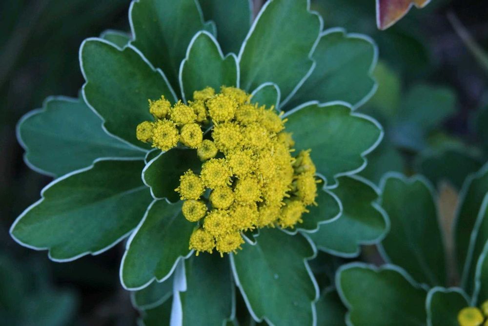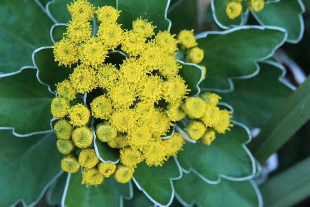 やっぱり葉っぱの白い縁取りと黄色の花を