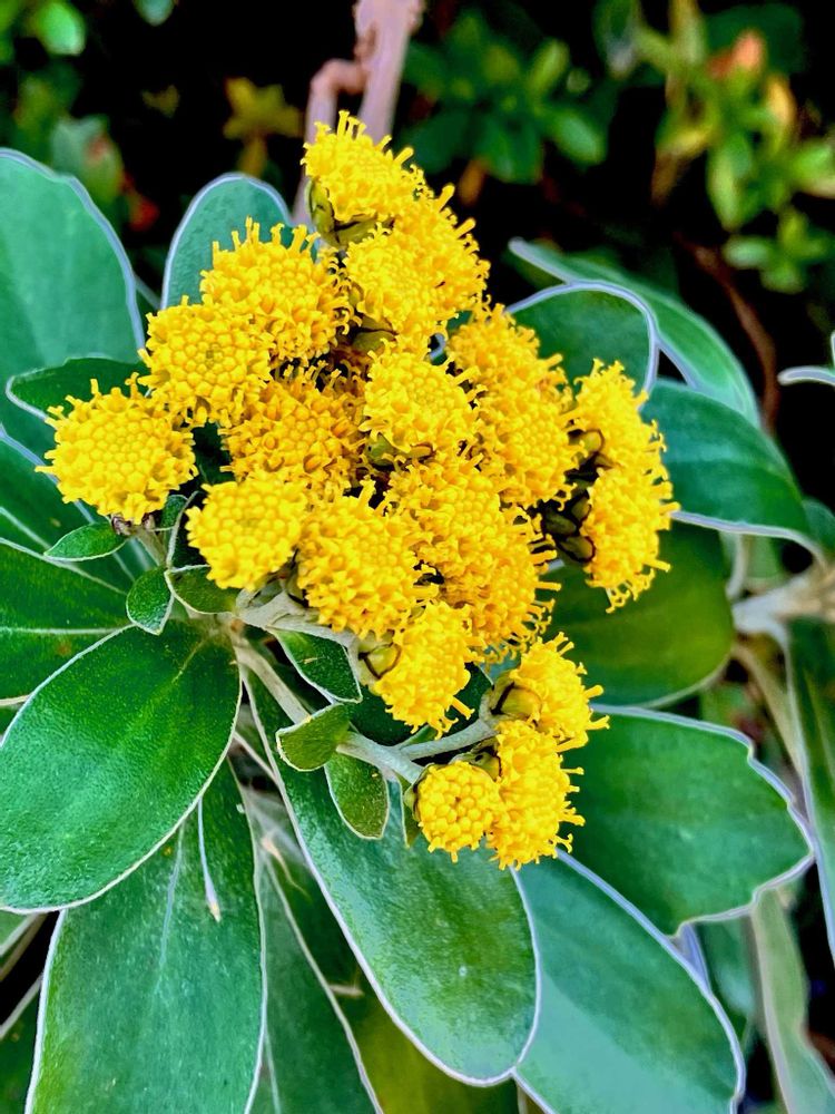 黄色い頭花が上向きに多数付き筒状花だけで、舌状花は無い!