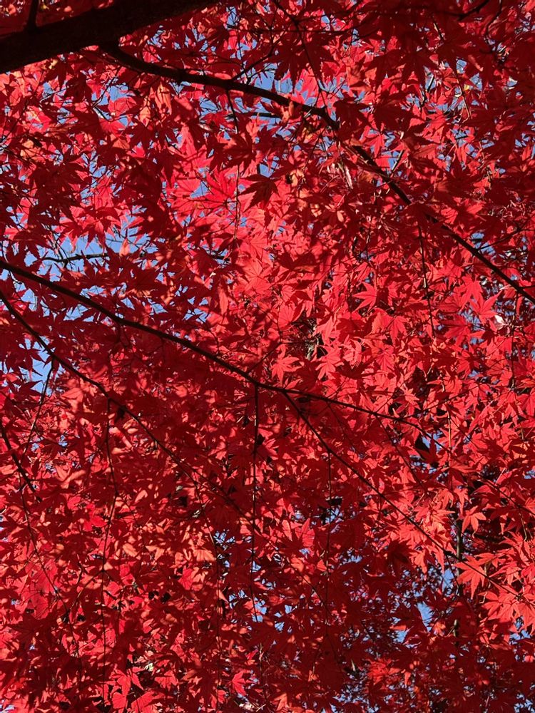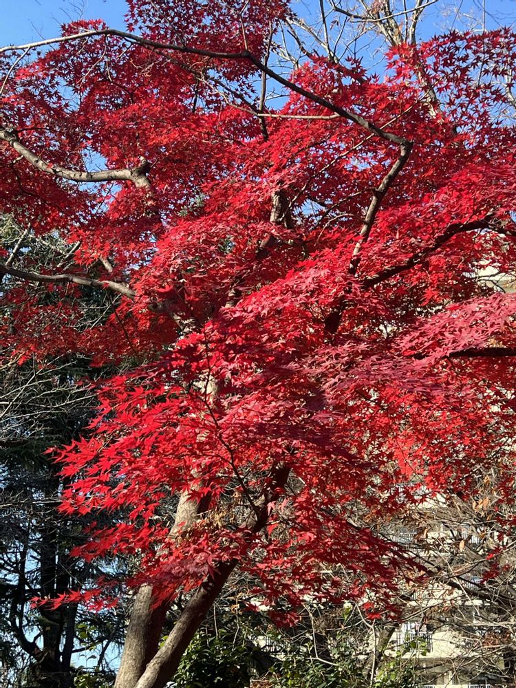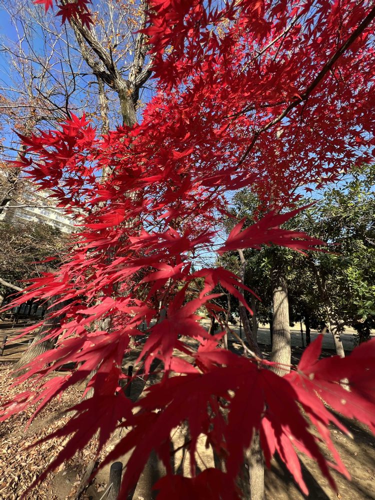 近所の公園、一本だけ真っ赤な紅葉🍁 きれいな赤でした