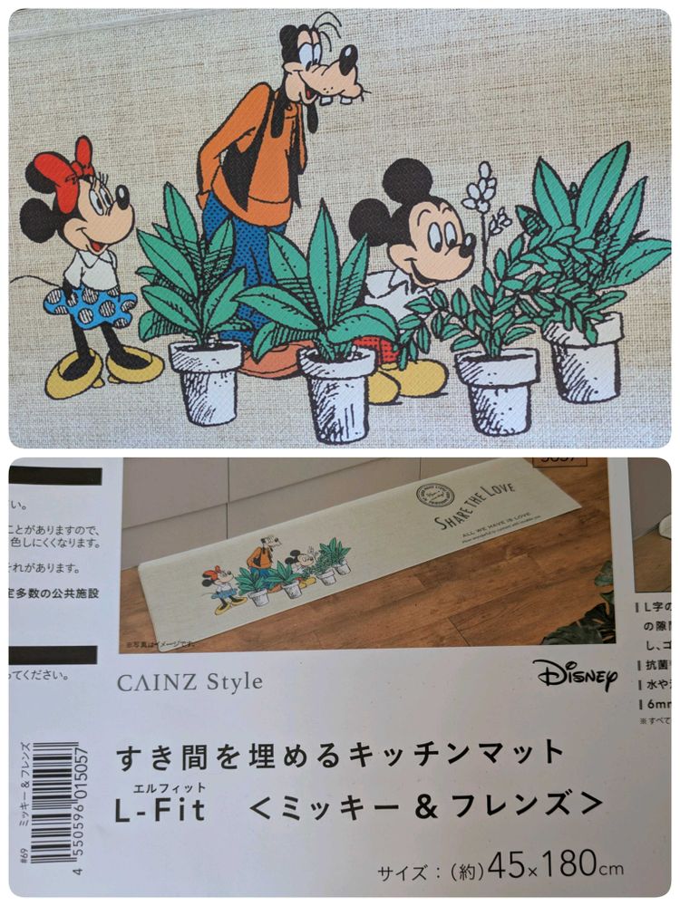 ⑤キッチンマットを取り替えました〜おニューって、そんな事でなんだか楽しい気持ちになりますよね~〜プーさんとミッキーどっちにする?で、ちょっとくすんだ色のミッキーの方が汚れが目立たないよ〜って旦那の言葉で決めたけれど、植物とミッキー♥♥わぁ~素敵なの選んだなぁ〜〜ルンルンルーン😋