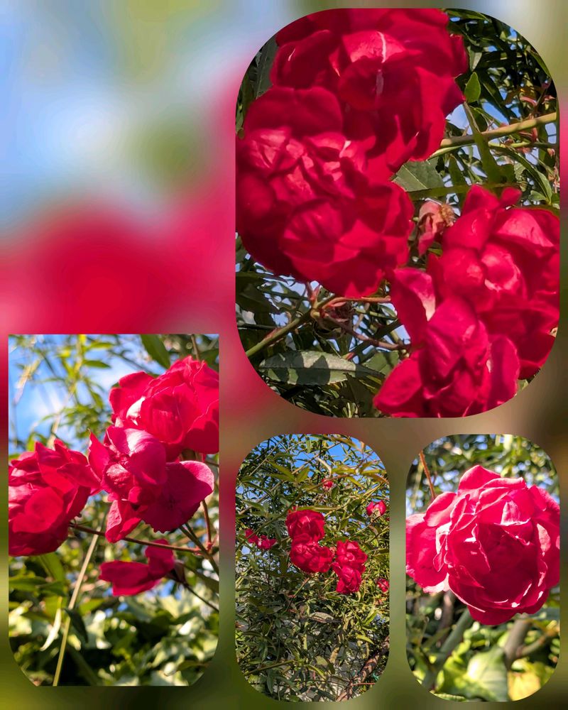 このバラの濃いピンクはよく見かけますが、赤は珍しいなと、背伸びをして、撮りました。夜明けが遅くなりましたね。東南の空に三日月🌙さんが浮かんでいます。