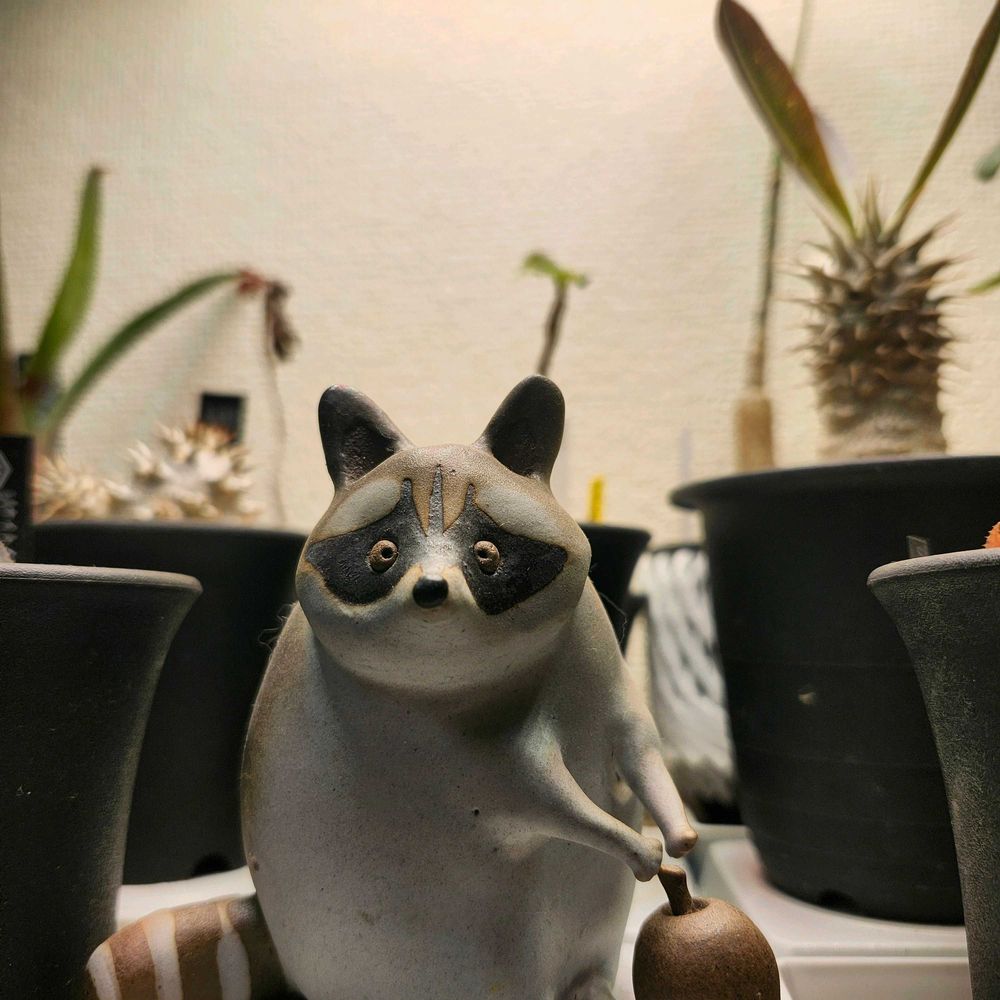 10年ほど前に店頭で一目惚れして購入した焼物のアライグマ。