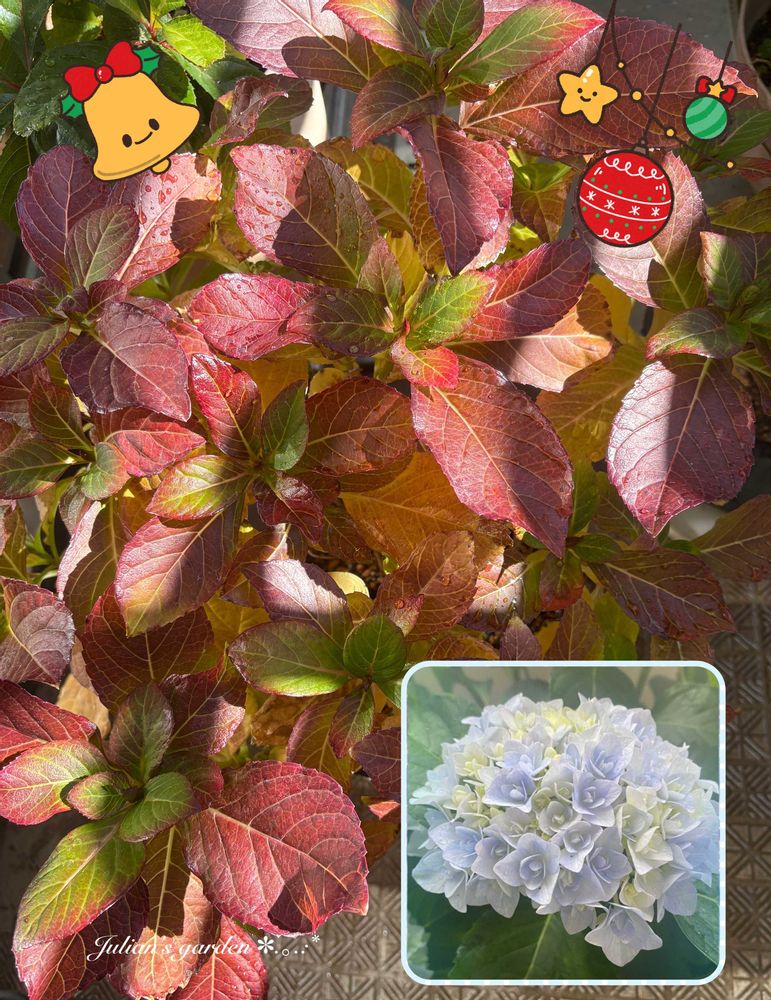 ②2年目の頂いた紫陽花ポージーブーケエリー↘️の葉っぱが綺麗に赤く色付いています❤️