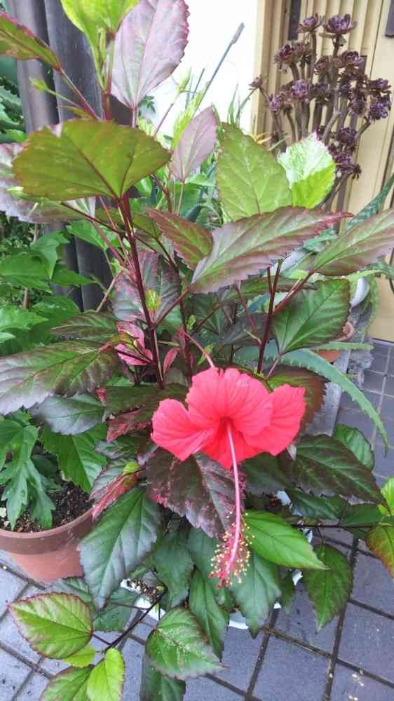ハイビスカス🌺も素敵ですが、後ろの黒法師❓立派なんですけど 何か 育てるコツが あるんですか❓