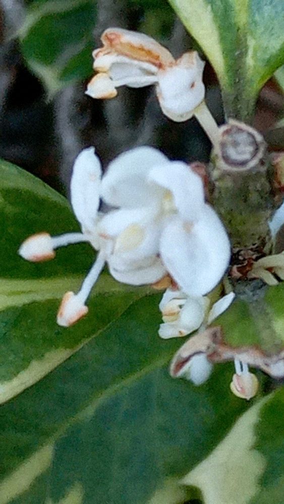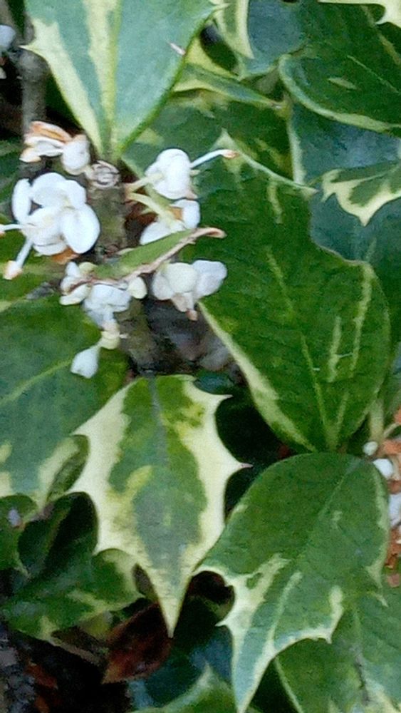 散歩道で見つけたヒイラギモクセイ・斑入り