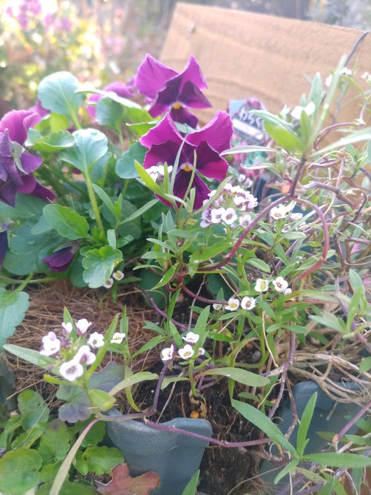 昨年種蒔きのアリッサムをそのまま放置の寄せ植え。ビオラを植え替え。2年目のアリッサムが愛しく、主役です。