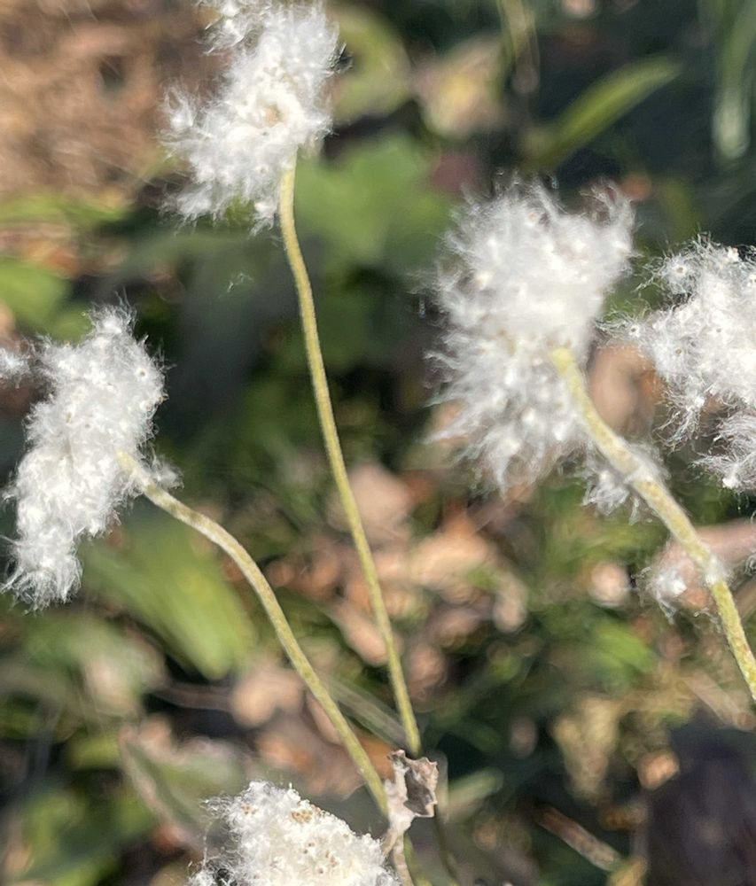 ③ 散歩道で、綿のような白い花が、よく見たら、秋明菊の花後の姿でした。