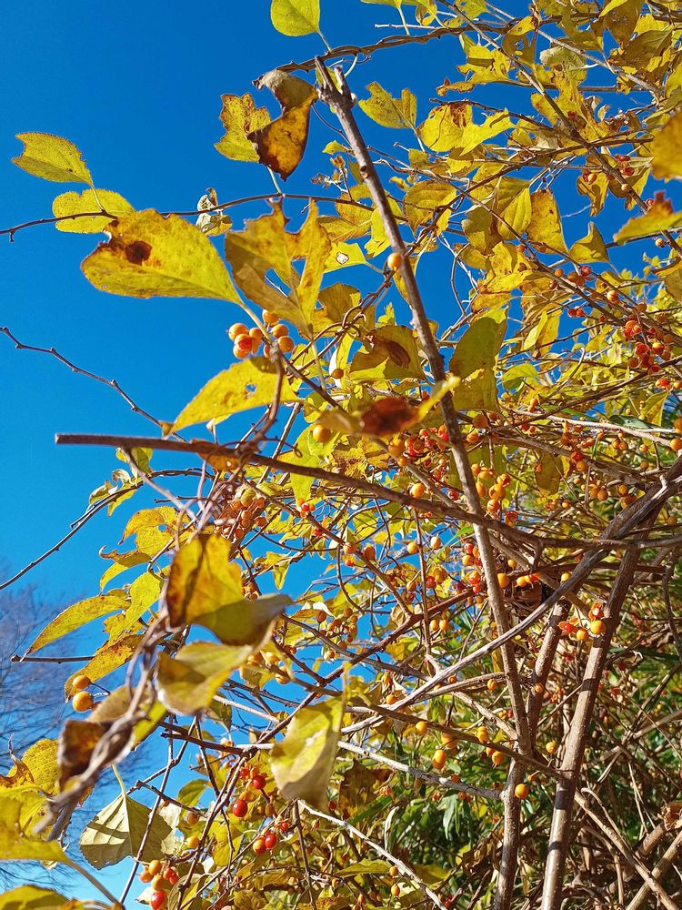 勝手に生えたツルウメモドキを、助けて育てて大きくなったんですが、今年はあまり実がなりませんでした。
