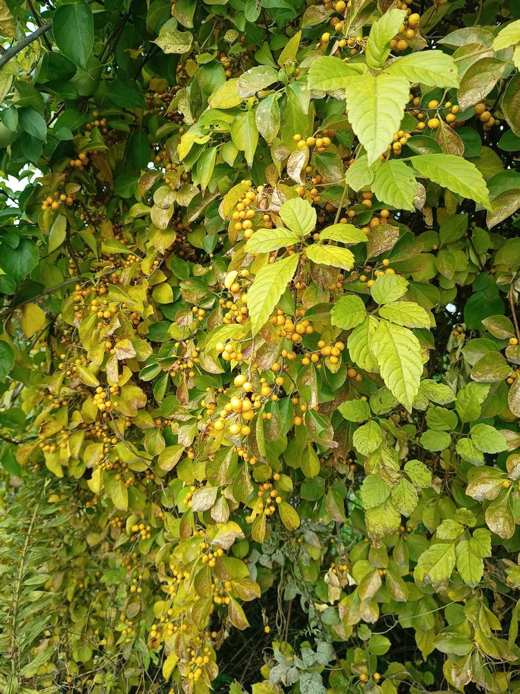 ジムの駐車場🅿裏の小川沿いに草ボーボーになって、ツルモドキ、ネズミモチがたくさんなってるんです。