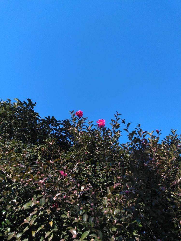 綺麗な青空に咲く山茶花 素敵に撮れましたね😍