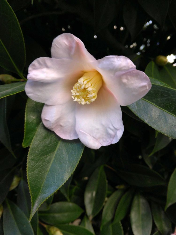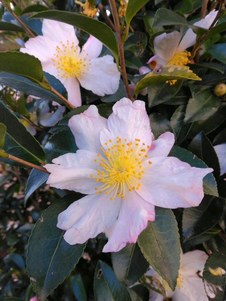 *そして、これは「サザンカ、山茶花」ですね。花びらが開いていて。まだ下に花ビラがハラハラと落ちていませんが。