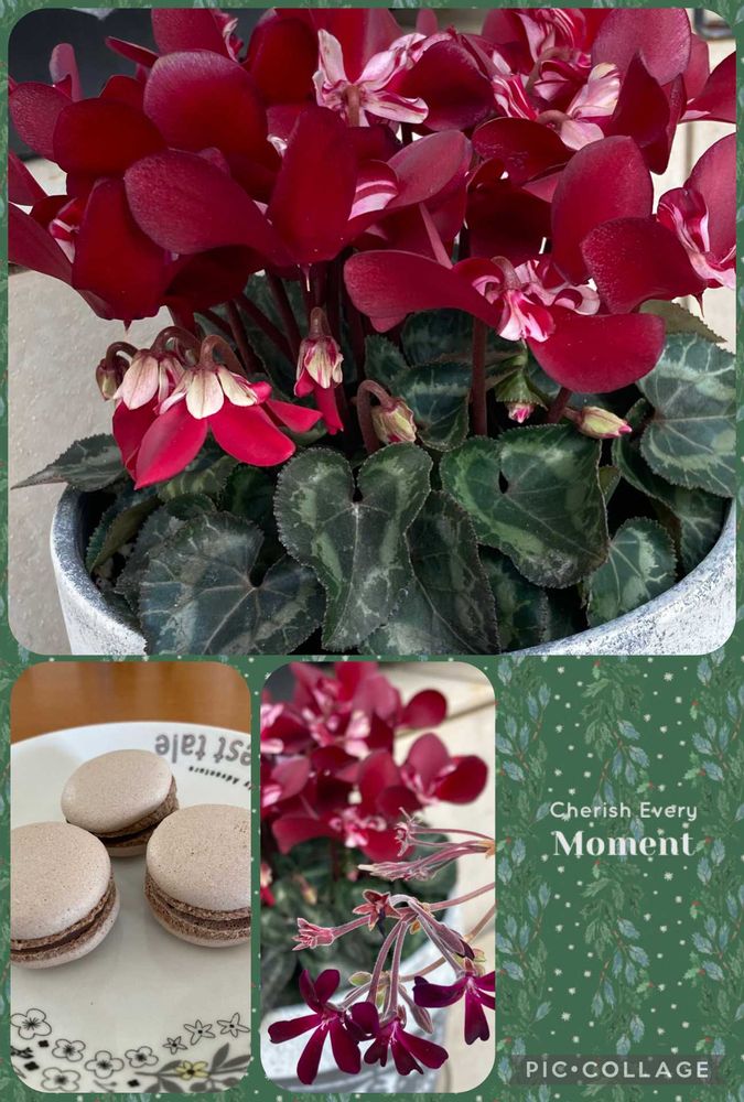 赤いお花はこの時期素敵に見えますね😍シドイデスさんの赤紫色とコラボ😊 久しぶりにお客様用にマカロンをたくさん作りました☺️チョコマカロンの他にも3種類作ってみました年末年始のおやつ🙄食べすぎ注意⚠️ふふふ
