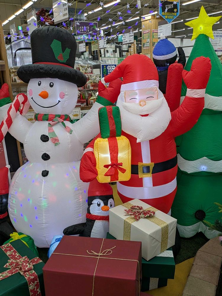 3️⃣HCに入って直ぐの所に沢山のポインセチアが並べてあって、そこに大きなバルーンのサンタサン達がいたよ🎅🏻☃️🦌