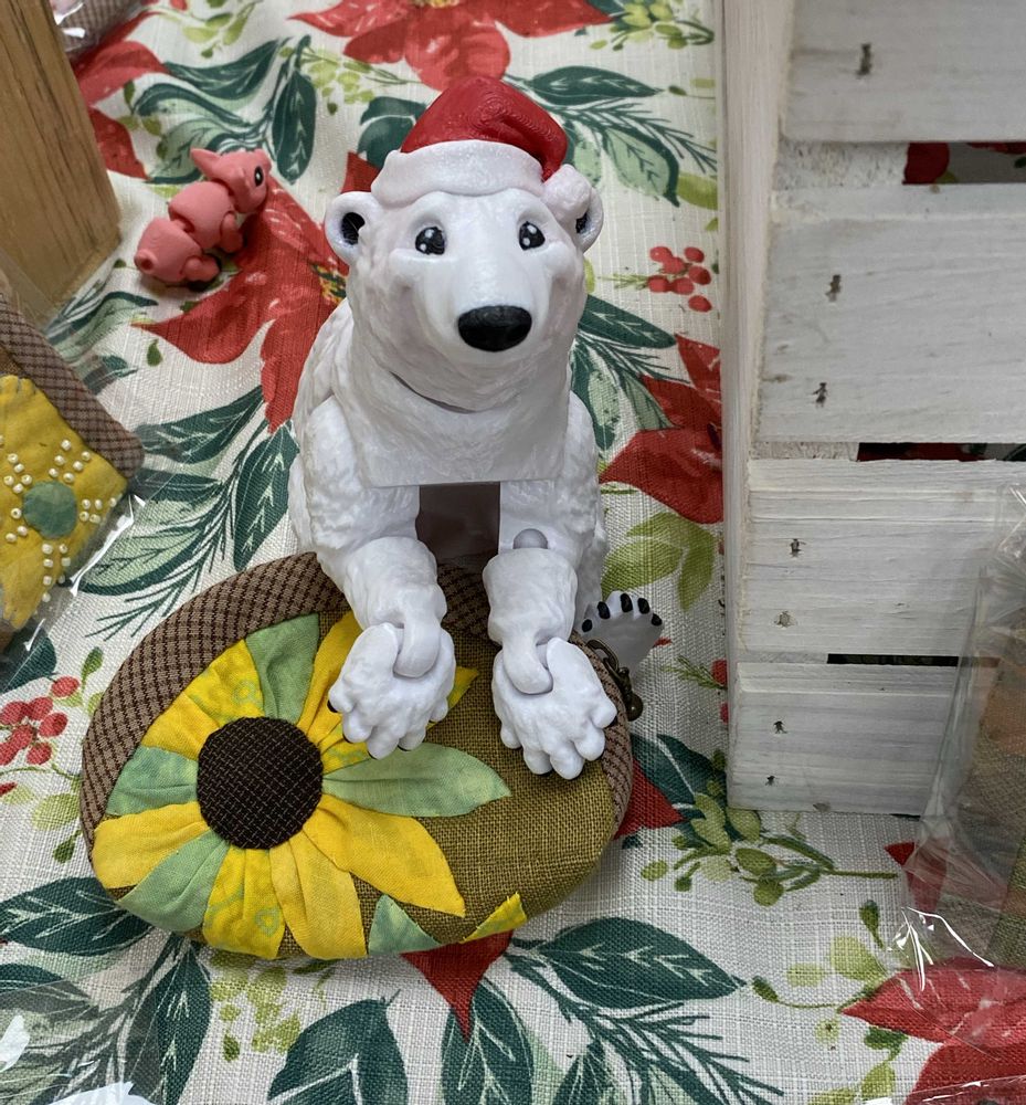 3Dフィギュアのホッキョクグマさん。サンタの帽子をかぶってる🎅