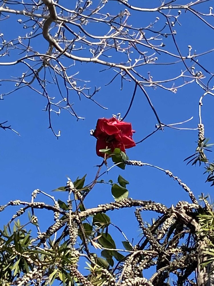 冬空の青🟦に似合う薔薇🌹…
