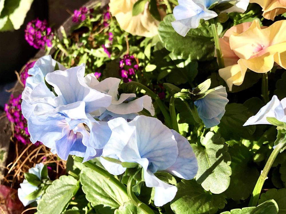 今日の私のお花さんはとっても綺麗な色合いのパンジーとビオラさんです٩(๑❛ᴗ❛๑)۶🩵🩵💚