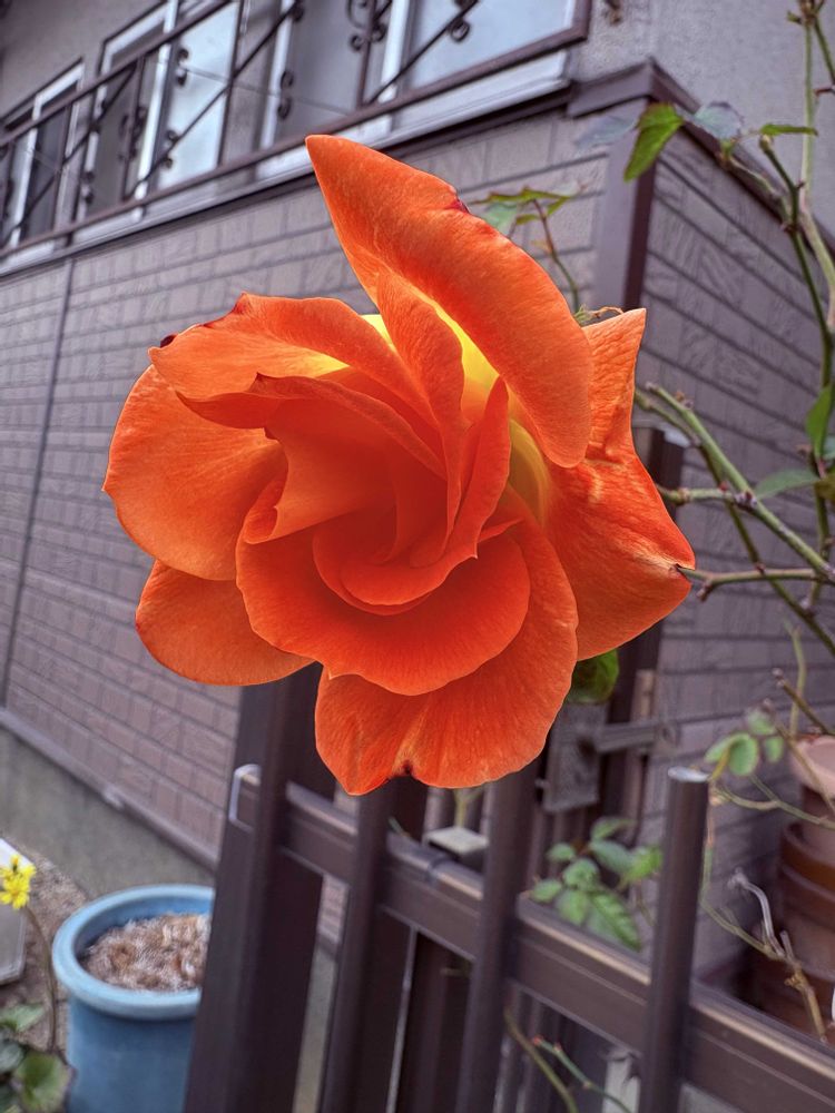 オレンジの🌹珍しいね。散歩道又行きたくなるね。私も散歩しながら写真取ってるとき🌹見つけ🏠の方と初めて会ったのにお喋りそこを通って散歩花の好きな人は、優しい人が多いね。