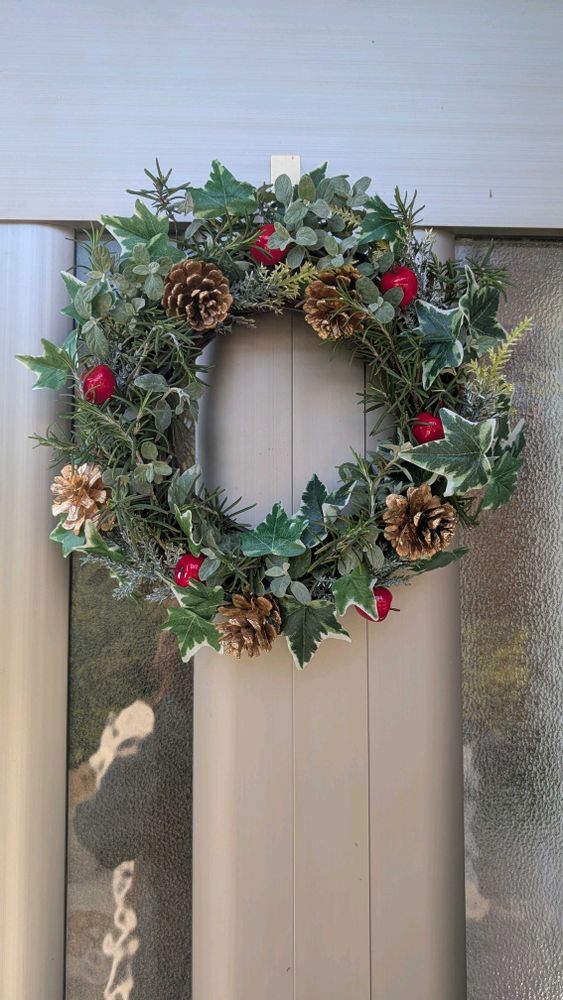 先日の🎄リース あまりにもスカスカだったので ローズマリーとツリージャーマンダーを入れてボリュームを出しました🥰