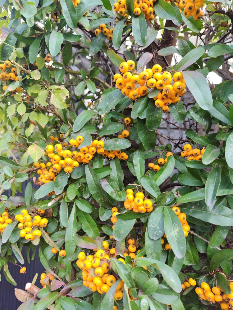 病院近くのお宅に黄色いピラカンサス?