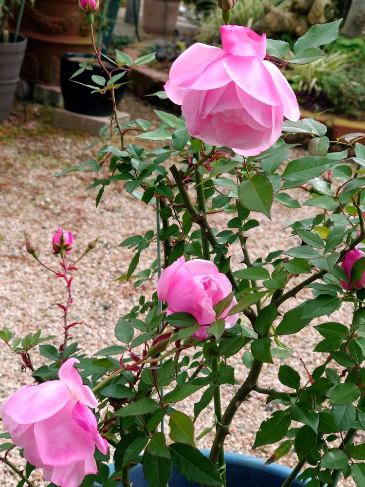 寒空にピンクの薔薇さんが頑張って咲いています!