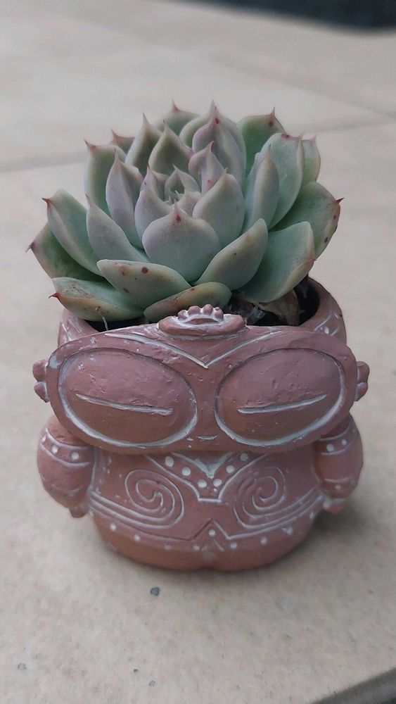 昨年末に買った土偶?の小さい鉢にこんもり多肉が育ちました。可愛い😆名前分かんなくなっちゃった苗だけど、大切にします✨
