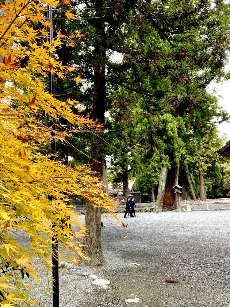 お伊勢さんの外宮は、まだ紅葉🍁が残ってました。あと8年で式年遷宮となりますが、その移設場所が右側に見れます。紅葉の中に外宮の金色の柱が紅葉と同調しています😂