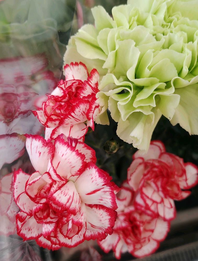 赤いのはカーネーションですよね?季節関係なく見れる時代ですね。