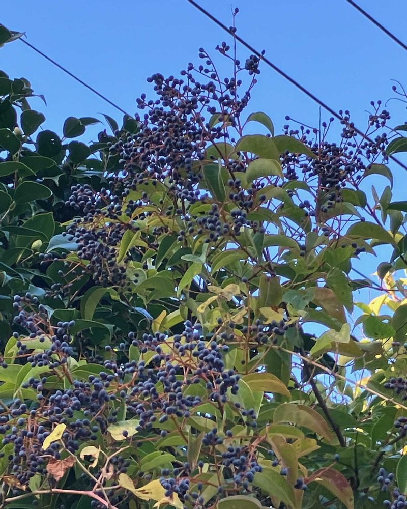 トウネズミモチの実、青空にいっぱいお見事🩵⚫️