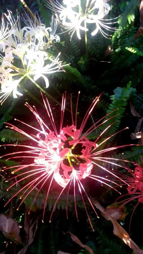 木陰で、朝日に輝くリコリスがとても綺麗でした🎆