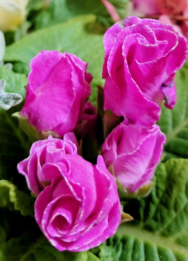 昨日の白いプリムラと三種類と葉っぱで寄せ植えにしました🪴´-