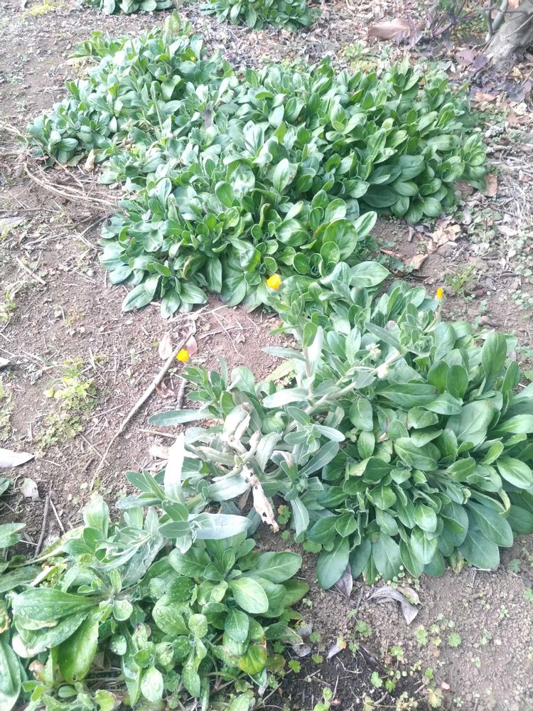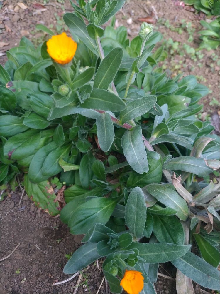 カレンジェラと覚えています。零れ種から咲いて、周りは春に咲くシレネがいっぱいです。ヤグルマギクも春の準備ですね