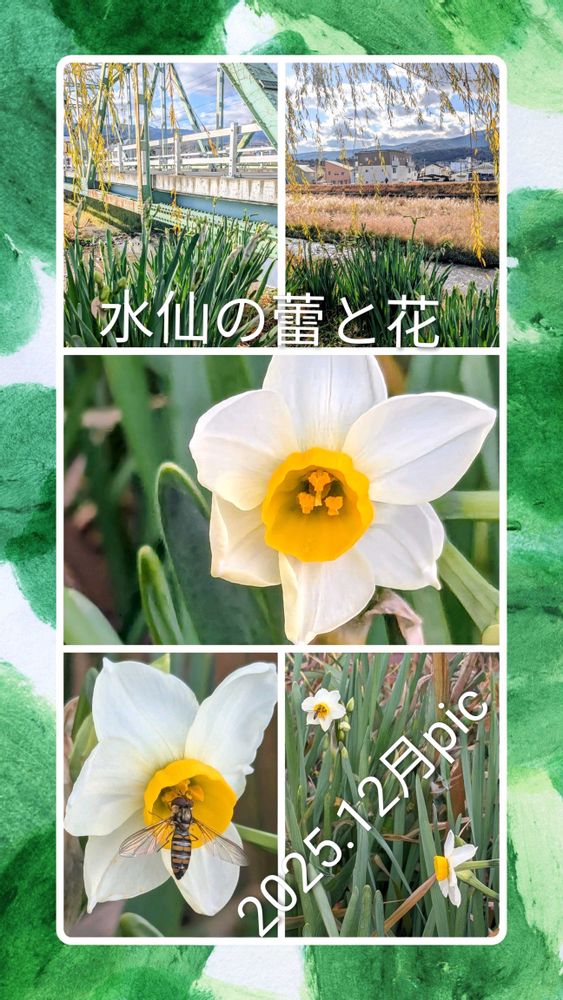 1️⃣川沿いを散歩中に見つけた水仙の蕾と花