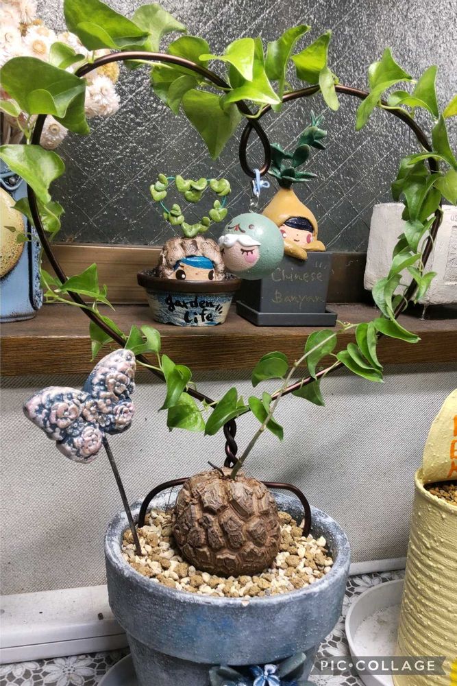イベント後のインスタ販売で見つけたiga berryさんのコルク人形。偶然♡の亀甲竜(隣はガジュマル)コラボさせて飾っています💕この写真にmiwaさんもびっくり🤩