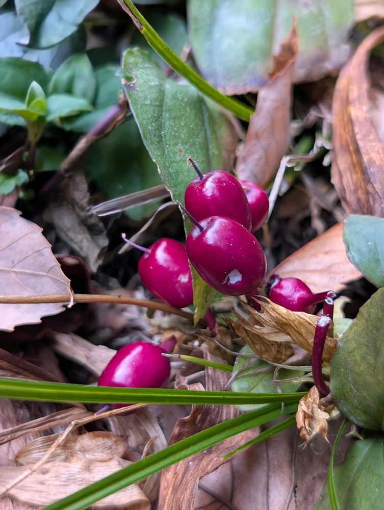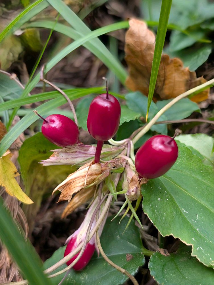 果実は長さ約12㎜の楕円形の液果、紅色に熟す。