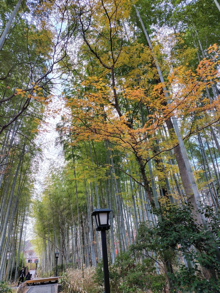 ①竹林の小径…紅葉も少し残っていました🌿🌿