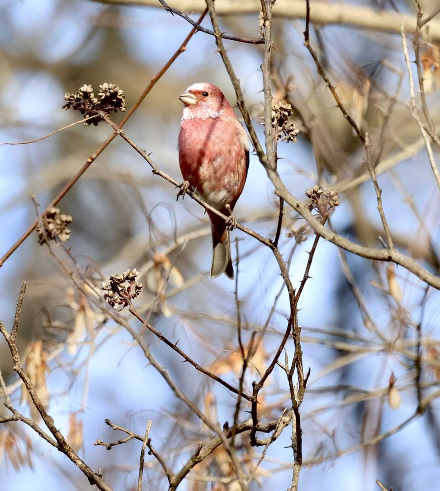 オオマシコの成鳥(大人の鳥)は、濃い紅色になります。私も今年知ったのですが、そこまでに5年程かかるそうです。